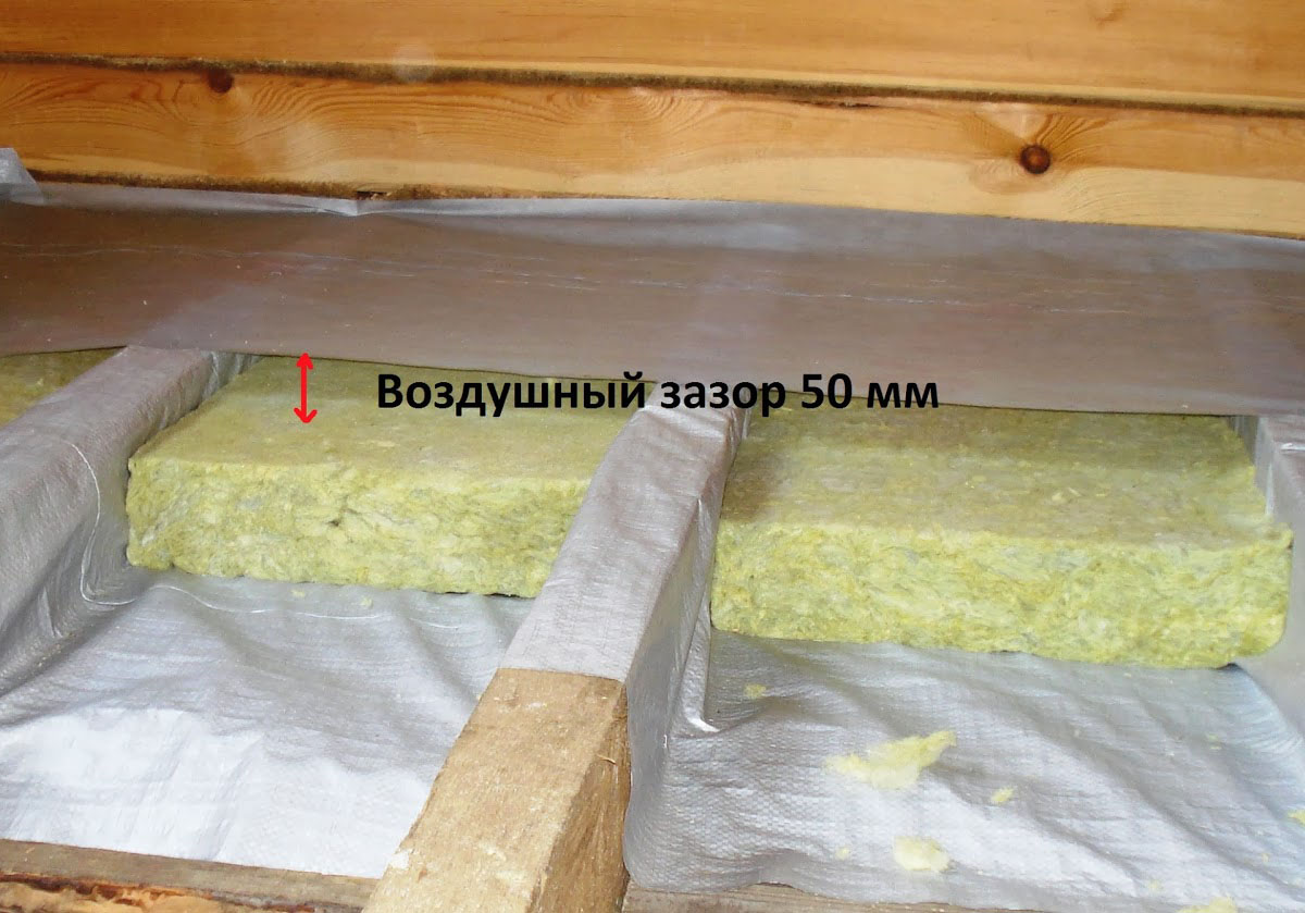 При укладке минеральной ваты нужно обязательно позаботиться о надёжной гидроизоляции, так как при намокании этот утеплитель теряет свои свойства. Слой ваты зависит от превалирующего климата в регионе.
