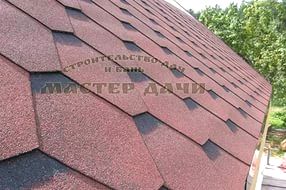 В качестве мягкого покрытия для крыши бани чаще всего используют битумную черепицу. Этот кровельный материал делают на основе нетканого стеклохолста, который пропитывают битумом, а потом покрывают минеральным слоем. Верхний минеральный слой обеспечивает большую защиту, а также определяет цвет, который будет иметь мягкая черепица.