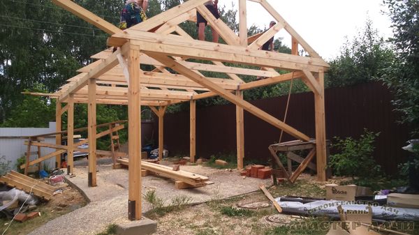 Строительство деревянного навеса для авто производится по следующей схеме: