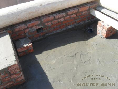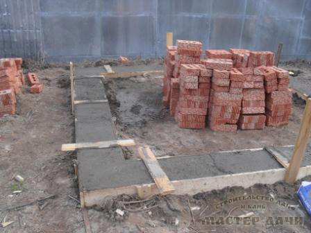 Столбчатый фундамент используется только для не утепленных предбанников, террас, сараев, хозблоков и беседок пристроенных к бане. Их ширина и глубина такая же как и у основной ленты.