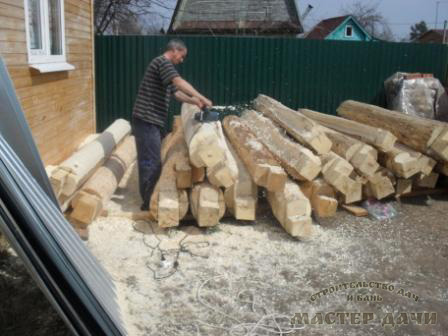 Для коробки стен используется сруб из бруса естественной влажности 150х150 мм либо рубленое бревно диаметром 22-32 см, в зависимости какая баня будет строится. Весь сруб до возведения строгается электро рубанками. Рубка сруба из бревна производится ручным методом в лапу или чашу, из лиственных (осина, липа) или хвойных (сосна, елка) пород дерева. Брусовый сруб возводится используя деревянные нагеля (шканты) для того чтобы после установки сруба брусья не увело и не загнуло. Межвенцовым утеплителем для сруба из бруса и бревна служит льноватин. Все материалы изготавливаются из зимнего леса, для увеличения их качества и долговечности.