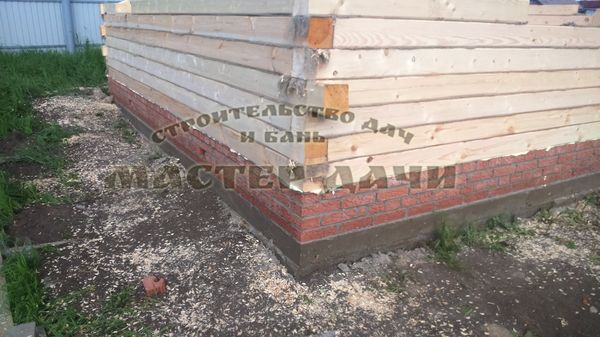 Обязательным условием при строительстве является использование цоколя из красного цокольного кирпича. Его использование предотвращает попадание влаги через фундамент, а добавление рубероида после цоколя в два раза увеличивает процесс задержания загнивания первых венцов сруба, будь что из бревна или бруса.